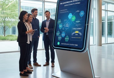 Adaptive Inclusion/Exclusion Screening Kiosks dynamically evaluate clinical trial eligibility in real time. Using protocol-specific logic, the kiosks guide candidates through inclusion and exclusion criteria, automatically adapting question order to reduce bias, improve accuracy, and accelerate enrollment decisions.